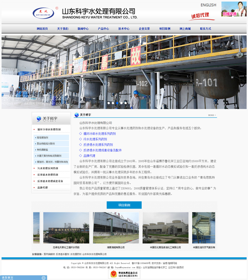 山東科宇水處理有限公司注冊成立于2002年,2005年在山東淄博齊魯化學工業(yè)區(qū)征地約15000平方米,建設了全新的生產(chǎn)廠房,配備了完善的實驗檢測儀器,其中包括一套循環(huán)水動態(tài)模擬試驗儀和一套反滲透純水動態(tài)模擬試驗儀,并擁有一批從事水處理實踐多年的水務工程師。
