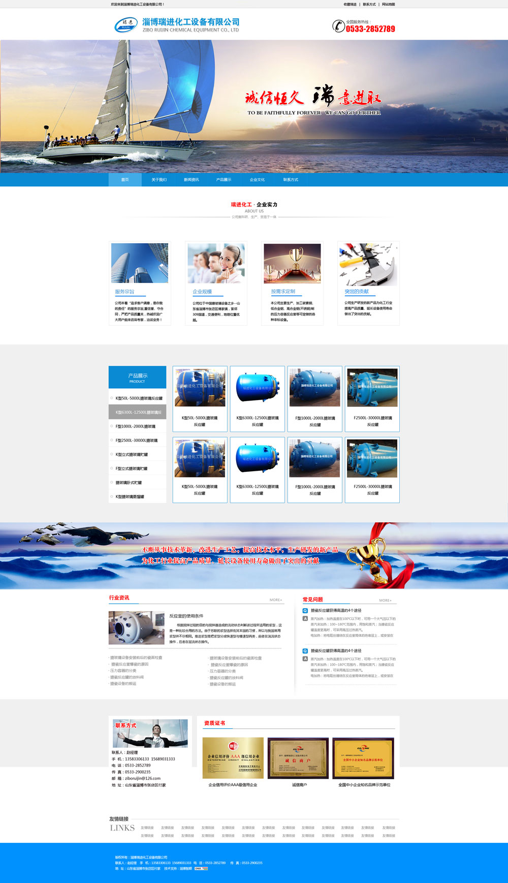 本公司主要生產(chǎn)、加工K/F50—50000L系列的搪玻璃反應(yīng)釜,碳素鋼、低合金鋼、高合金鋼(不銹鋼)制的壓力容器、換熱器、貯存容器、搪玻璃碟片 式冷凝器、搪玻璃攪拌器、溫度計(jì)套管、各種搪玻璃管道、彎頭、三通、四通、四氟設(shè)備、四氟變徑、四氟彎頭、四氟柵板、四氟三通等并可定做的各種非標(biāo)設(shè)備。