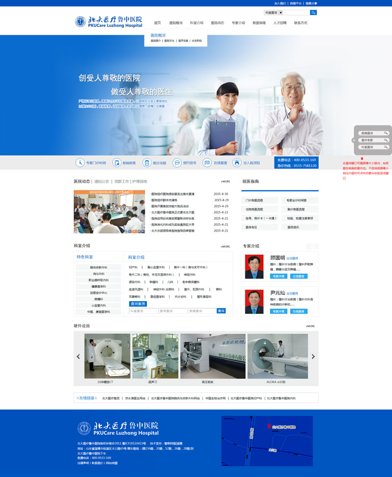 北大醫(yī)療魯中醫(yī)院始建于1966年,歷經(jīng)40余年,現(xiàn)已發(fā)展成為魯中地區(qū)一所集醫(yī)療、保健、科研、教學(xué)、急救于一體的三級(jí)綜合醫(yī)院。醫(yī)院占地面積45800平方米,建筑面積44402平方米,實(shí)際開放床位686張。醫(yī)院技術(shù)力量雄厚,現(xiàn)有職工981人,衛(wèi)生技術(shù)人員825人,其中主任醫(yī)師11人,副主任醫(yī)(技)師106人,主治(主管)醫(yī)(技)師248人,研究生導(dǎo)師人數(shù)4人。擁有目前國(guó)內(nèi)先進(jìn)西門子“4D”雙源CT、1.5T磁共振、Philips V3000 DSA、高壓氧艙、膠囊胃鏡、西門子鉬鎢雙靶數(shù)字化乳腺機(jī)、全自動(dòng)生化分析儀、美國(guó)GE四維彩超、全數(shù)字化X攝像系統(tǒng)(DR)等先進(jìn)設(shè)備,先后開展了數(shù)字減影全腦血管造影、腦動(dòng)脈狹窄球囊擴(kuò)張支架植入術(shù)、腫瘤介入治療、肝炎病毒基因監(jiān)測(cè)、鞍區(qū)腫瘤切除、髖、膝關(guān)節(jié)置換、鼓室成形、胎兒表面超聲三維成像、艾滋病篩查、CT掃描三維成像、介入起搏器植入、心臟搭橋、纖支鏡下肺泡灌洗 、B超及CT引導(dǎo)下進(jìn)行腫瘤穿刺活檢及射頻消融術(shù)、宮頸DNA倍體細(xì)胞檢測(cè)等技術(shù)130余項(xiàng),擁有淄博市首家廣泛應(yīng)用于臨床的遠(yuǎn)程會(huì)診中心,患者在本院即可得到北京301醫(yī)院及上海等多家遠(yuǎn)程機(jī)構(gòu)的國(guó)家級(jí)知名專家的診治,贏得最佳的治療時(shí)機(jī)。醫(yī)院設(shè)有主要業(yè)務(wù)科室34個(gè),其中心內(nèi)科、消化內(nèi)科、職業(yè)病呼吸內(nèi)科科、燒傷皮膚科為淄博市特色專科。教學(xué)科研成果顯著,市級(jí)以上科研成果十余項(xiàng),省部級(jí)以上刊物發(fā)表論文500余篇?,F(xiàn)為濰坊醫(yī)學(xué)院附屬醫(yī)院、濱州醫(yī)學(xué)院教學(xué)醫(yī)院。